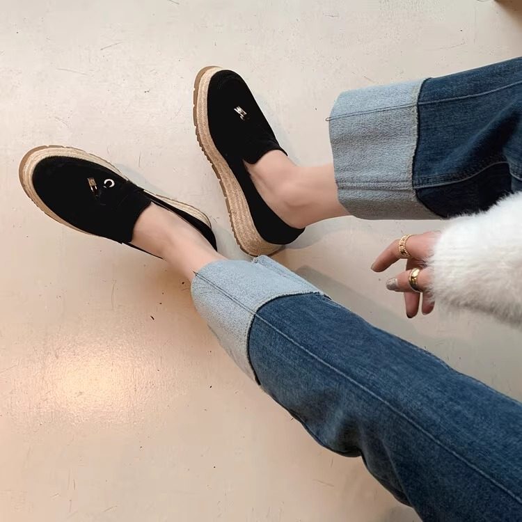 龙猫叔小个子草编松糕乐福鞋女