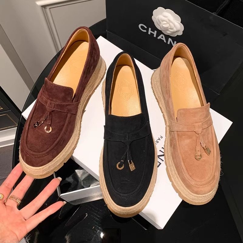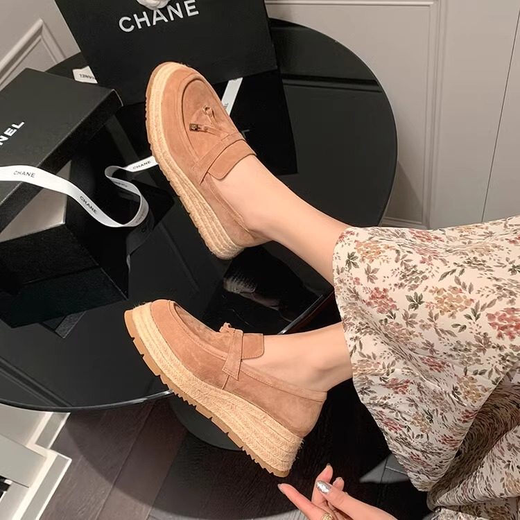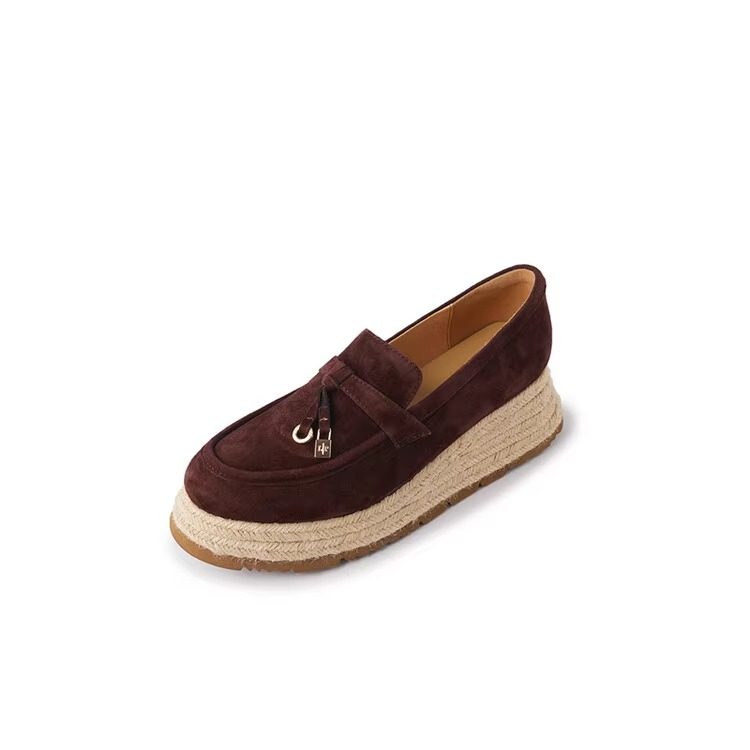 小个子草编松糕乐福鞋女2025春季新款真皮厚底流苏一脚蹬懒人单鞋