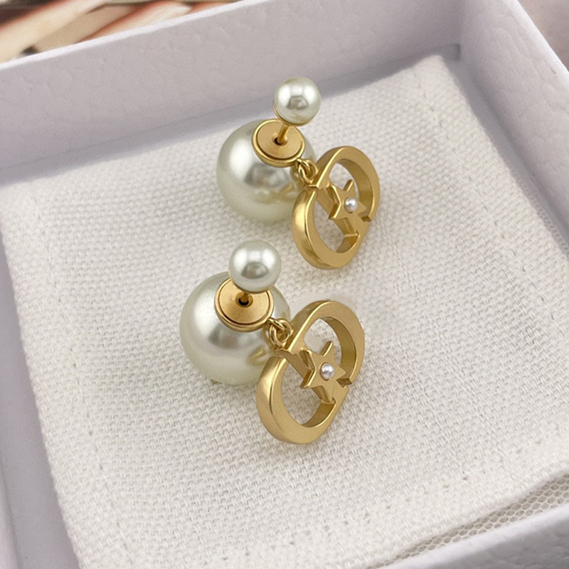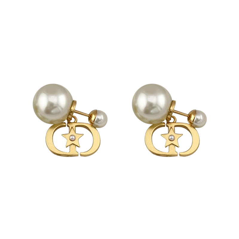 奥米迪奥字母星星珍珠耳钉金属质感前后戴耳环高级感百搭时尚新款