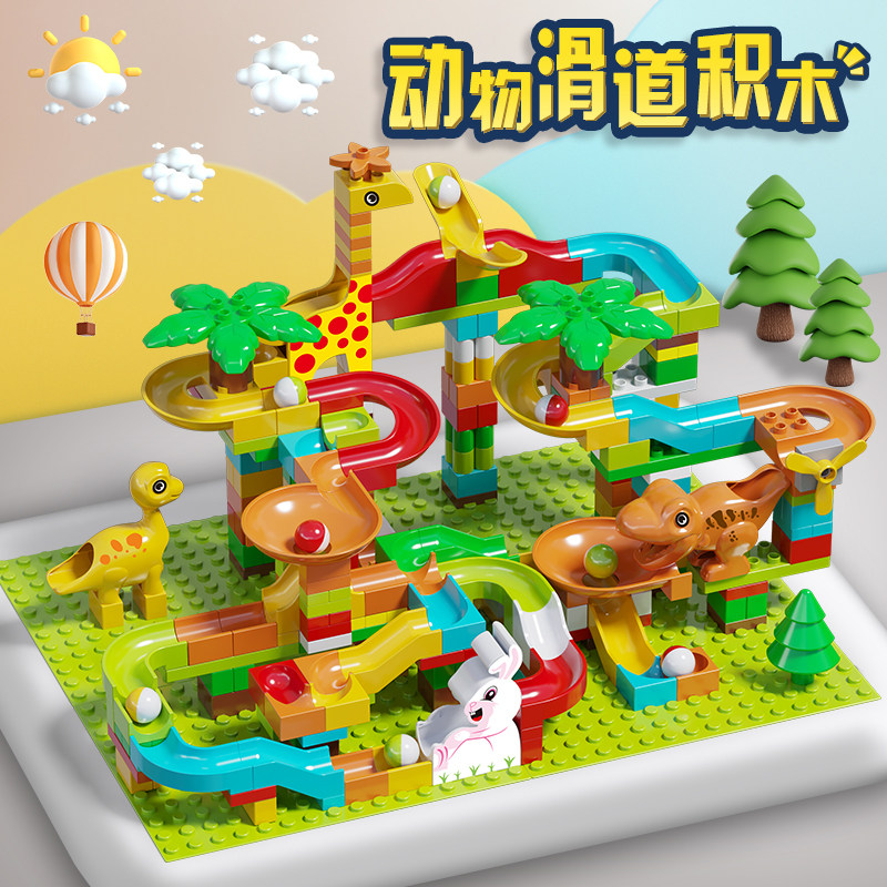 大颗粒恐龙动物积木百变益智滑道DIY城堡拼装男孩儿童玩具3岁以上