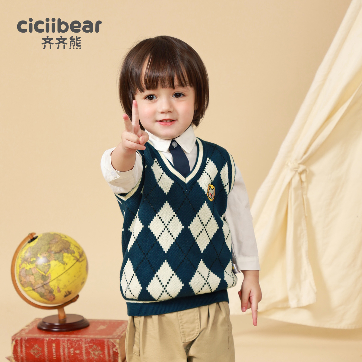 【清仓】[学院风]齐齐熊男童马甲儿童背心纯棉宝宝毛衣秋冬针织衫