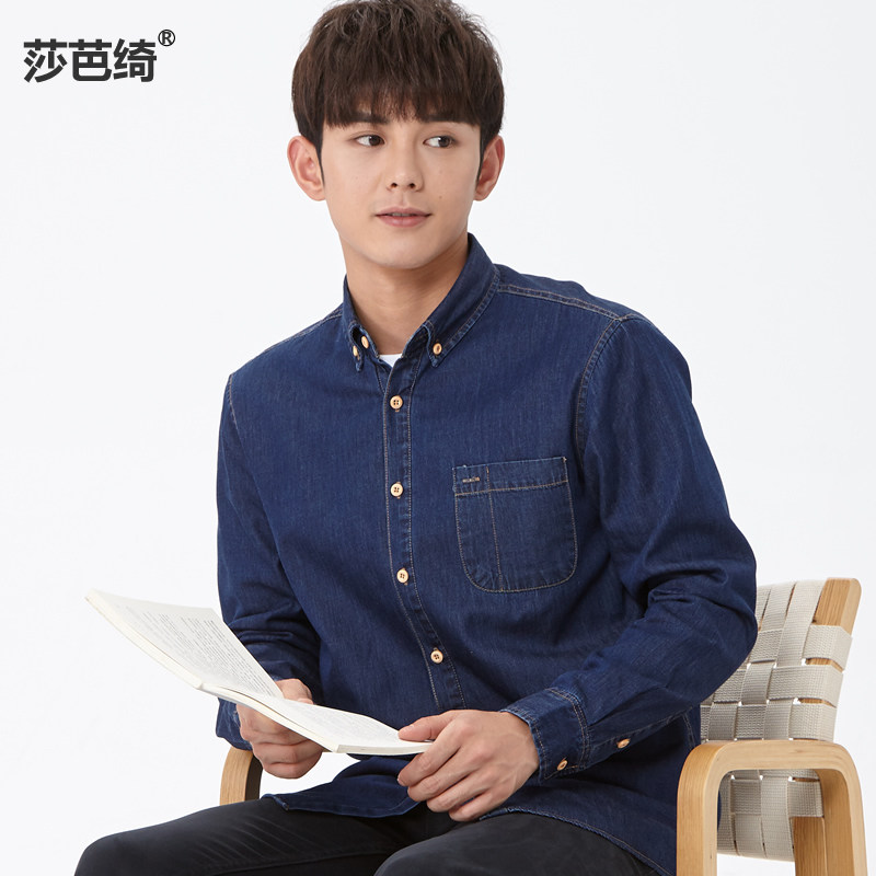 莎芭绮秋冬新款男纯棉牛仔长袖保暖衬衫休闲潮男加绒加厚保暖衬衣