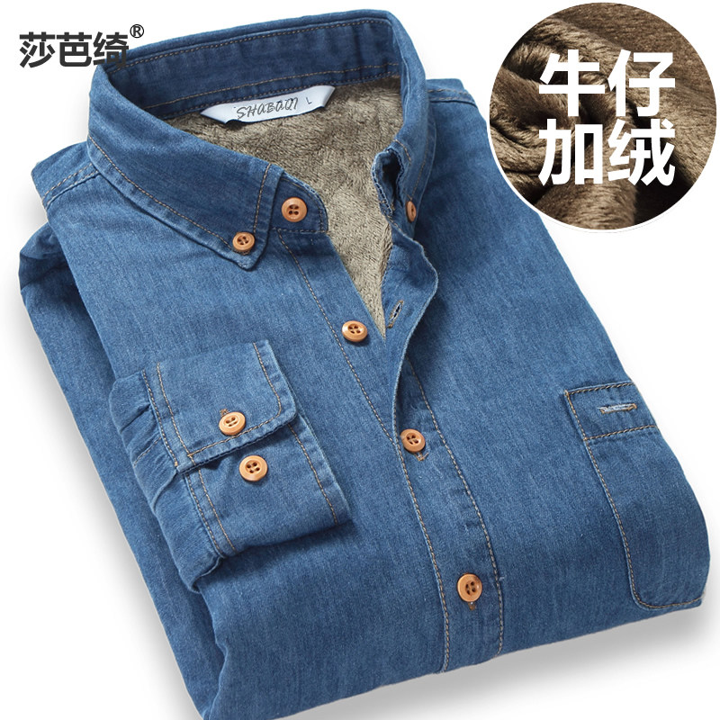 莎芭绮牛仔纯棉保暖加绒加厚衬衫