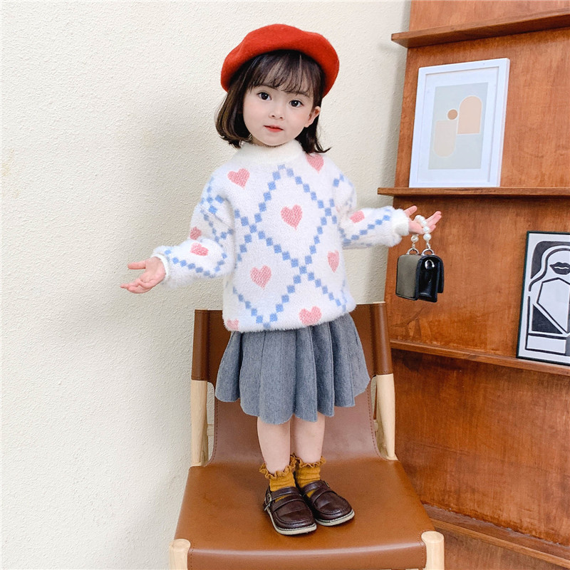 女童毛衣2025新款水貂绒秋冬洋气中大童小童打底衫套头衫加绒加厚