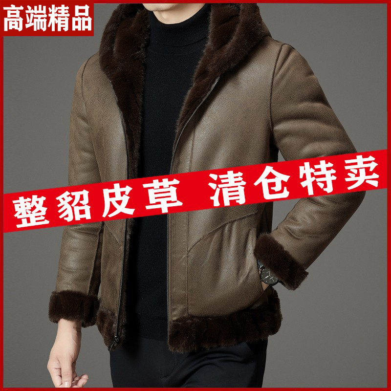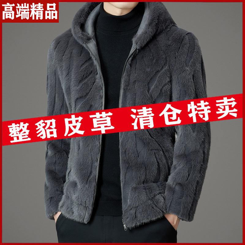 皮尔卡丹貂皮大衣男士皮毛一体水貂毛金貂绒翻领外套防皮草短款