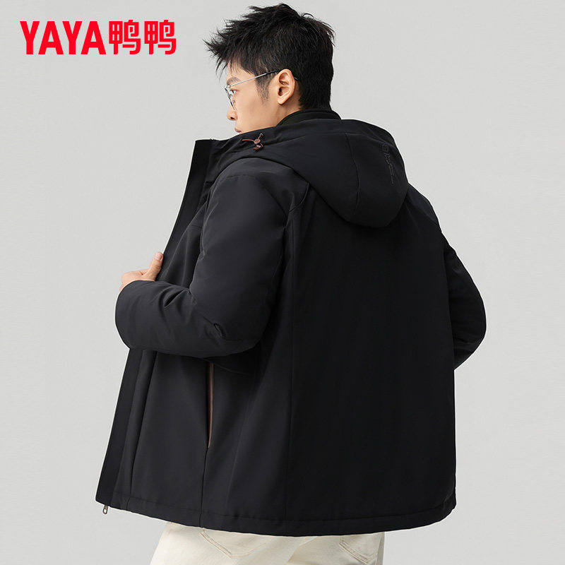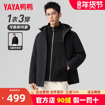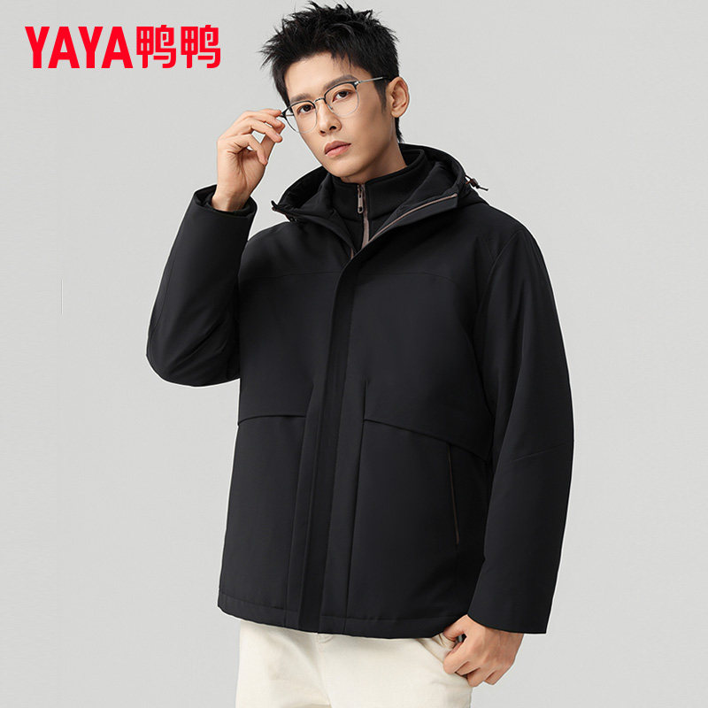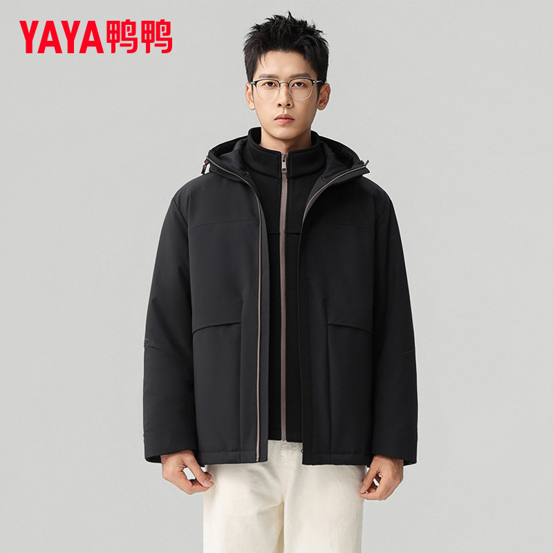 鸭鸭羽绒服男短款2025冬季新款时尚休闲连帽可脱卸内胆二合一外套