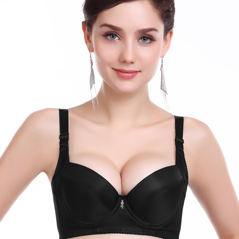 秋冬新款光面无痕有钢圈女士超聚拢调整型文胸精油按摩纯棉内衣