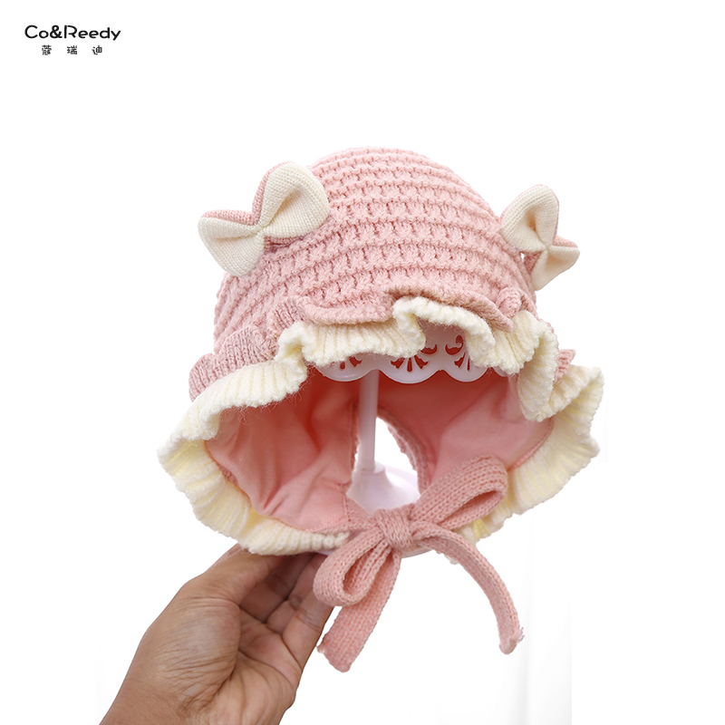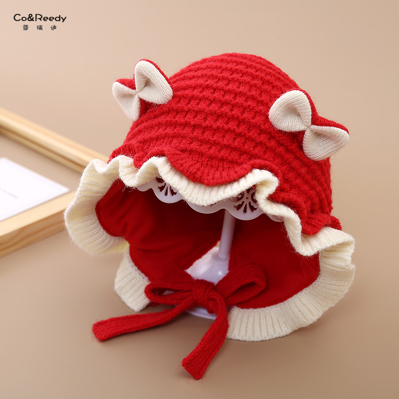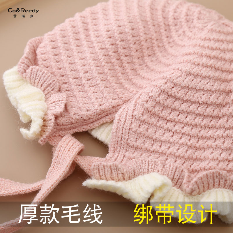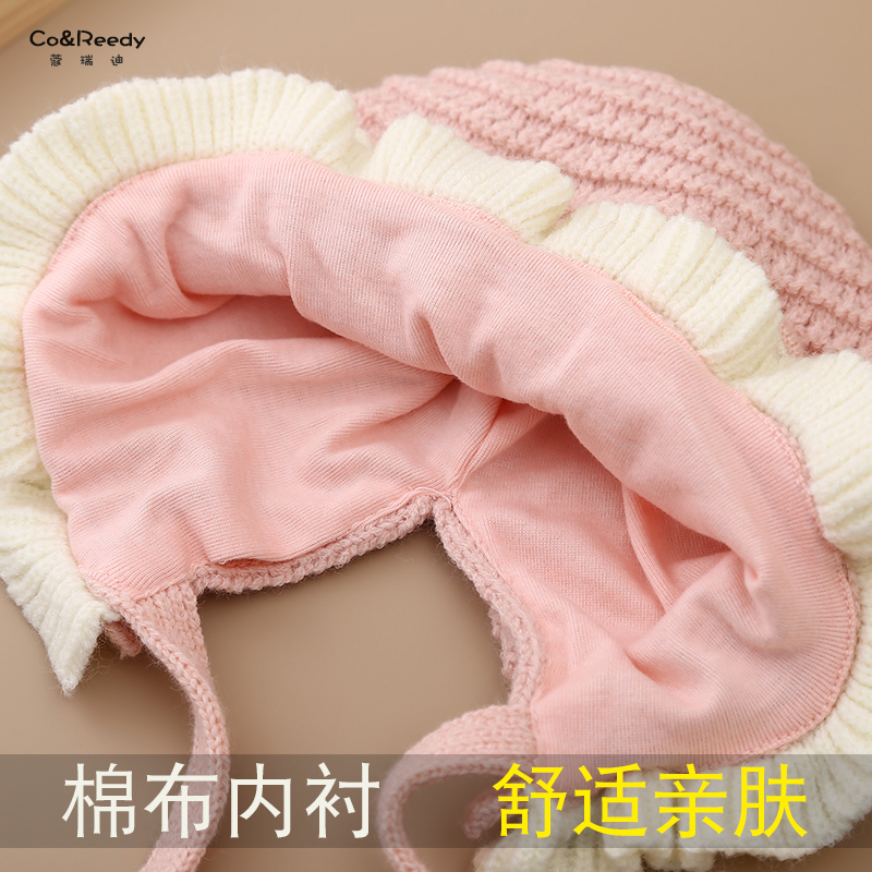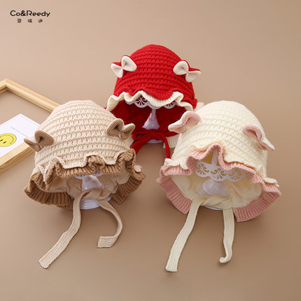 儿童帽子秋冬款甜美花边毛线帽可爱超萌保暖护耳帽女宝宝针织套帽