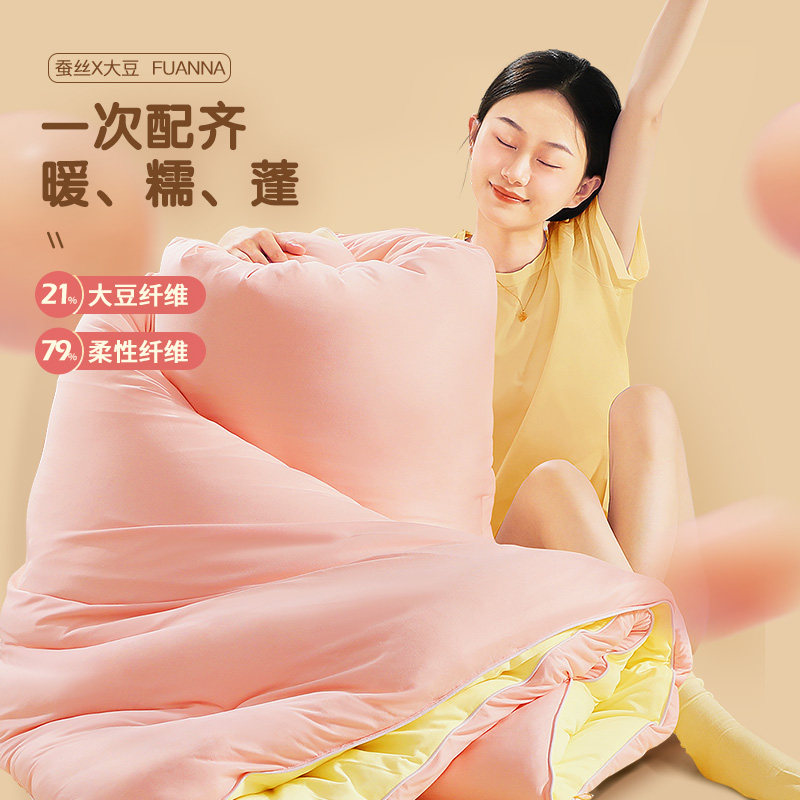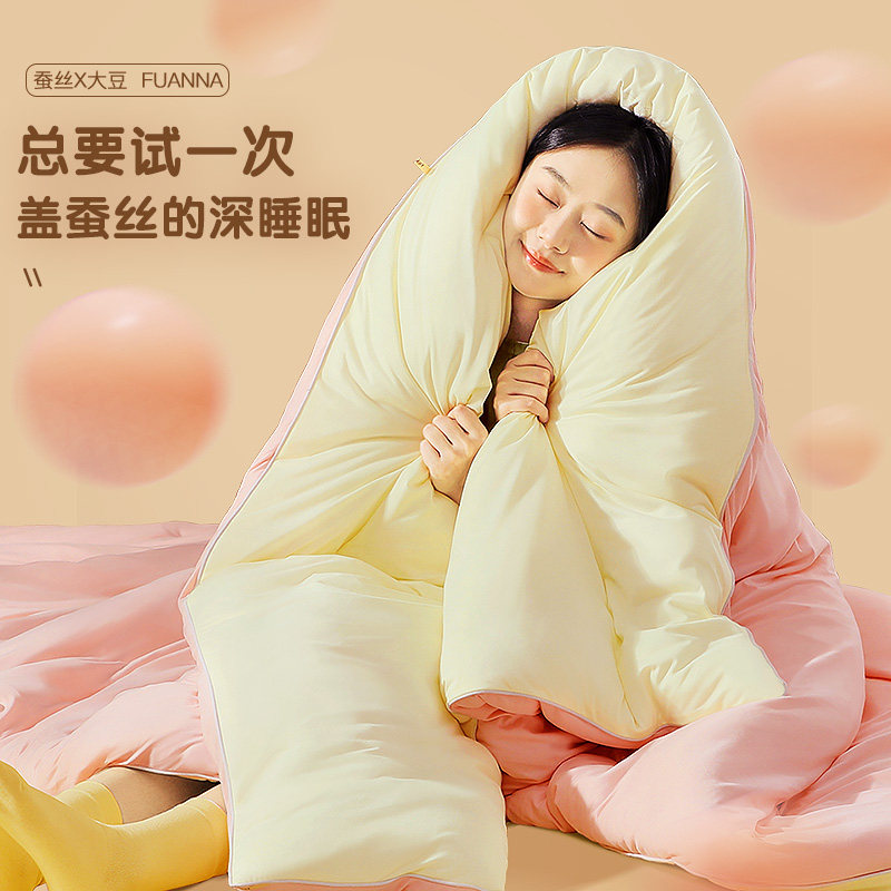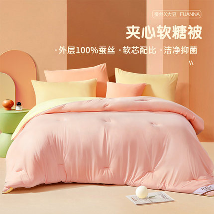 富安娜蚕丝被100%蚕丝被子婚庆春秋被加厚保暖冬被四季喜庆喜被子