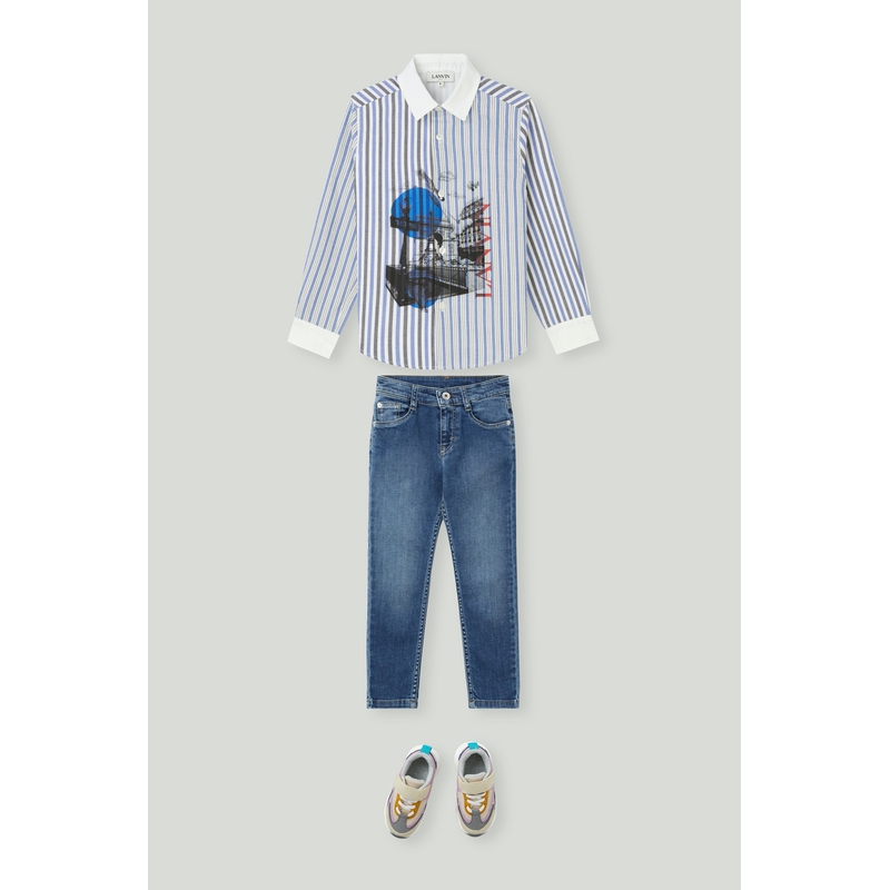 【折扣】Lanvin 夏季男童童装印花条纹棉质牛津纺衬衫