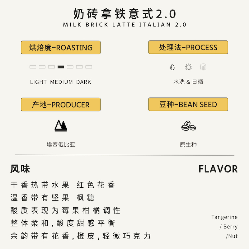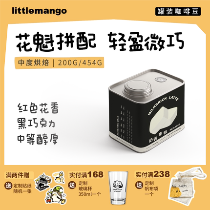 littlemango奶砖拿铁埃塞花魁拼配中度烘焙意式咖啡豆200g/454g