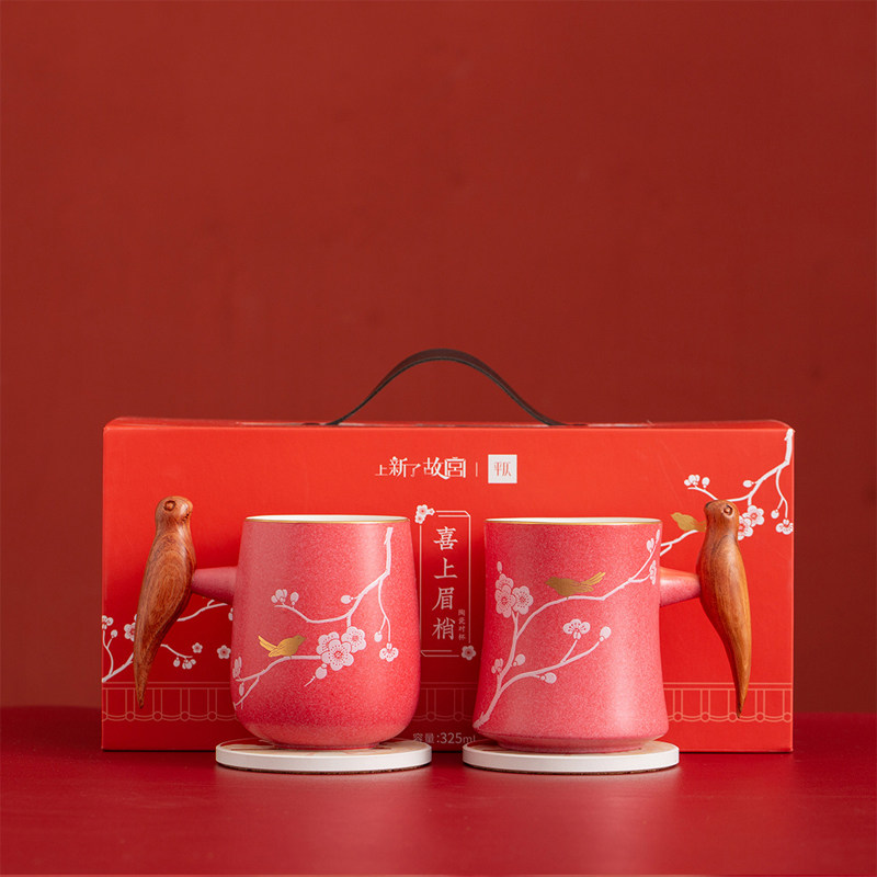 上新了故宫喜上眉梢陶瓷对杯情侣伴手礼结婚敬茶杯伴手礼新婚礼物
