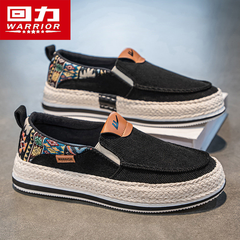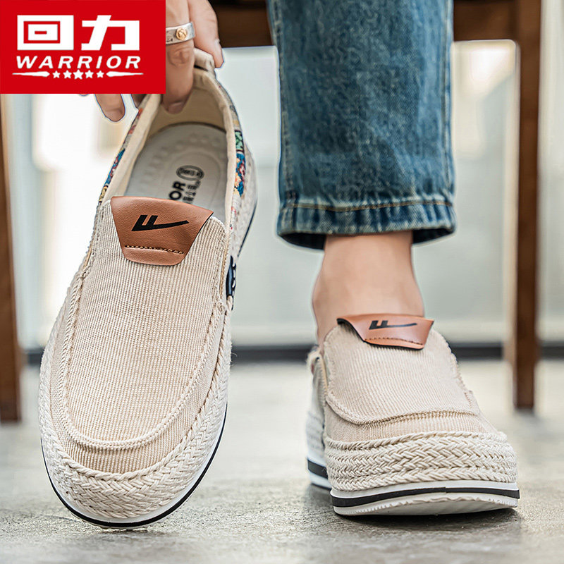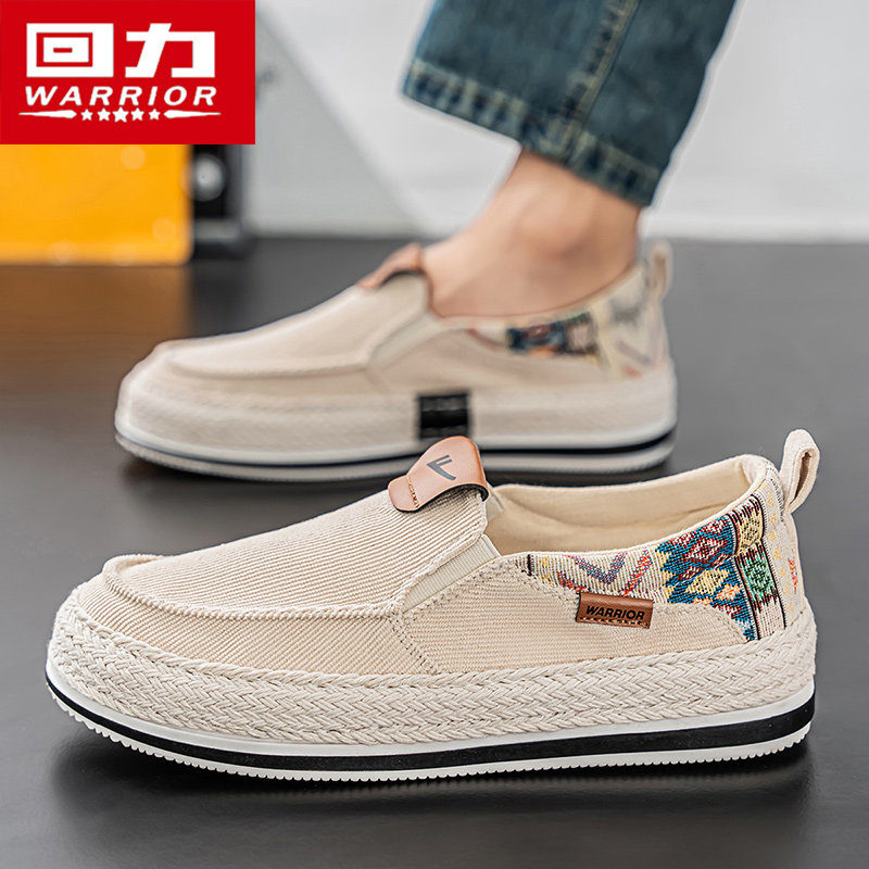 回力男鞋夏季透气一脚蹬老北京亚麻布鞋懒人休闲民族刺绣帆布板鞋