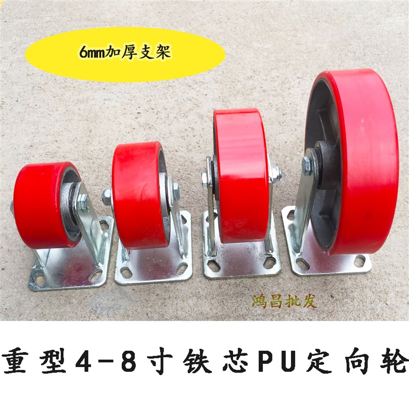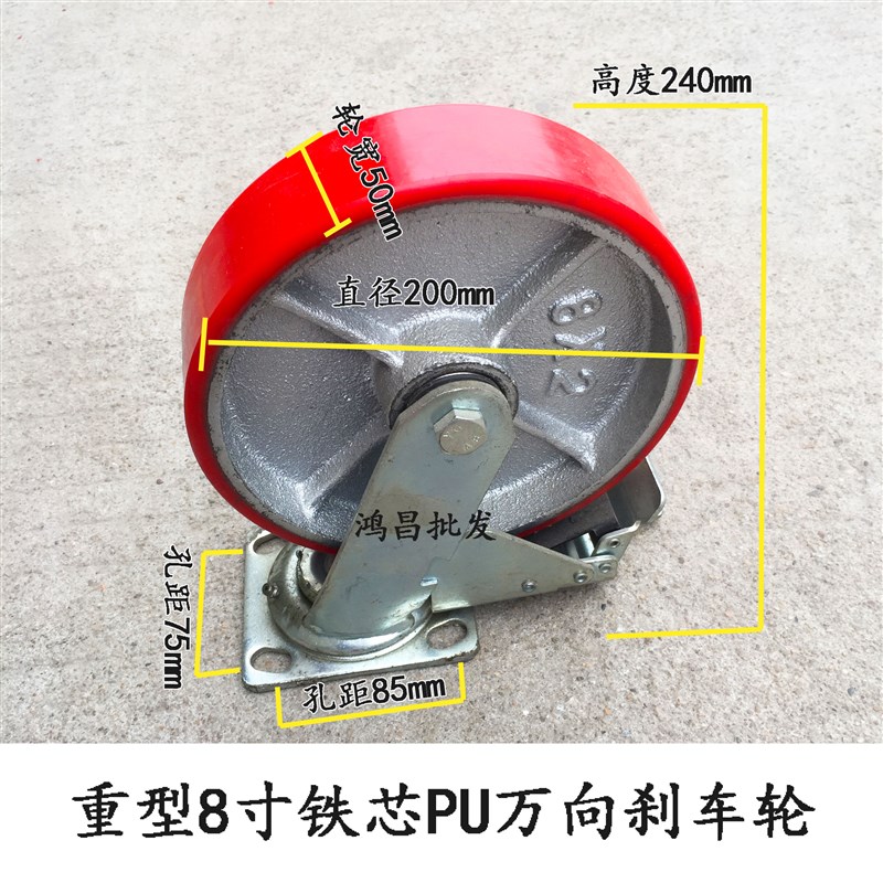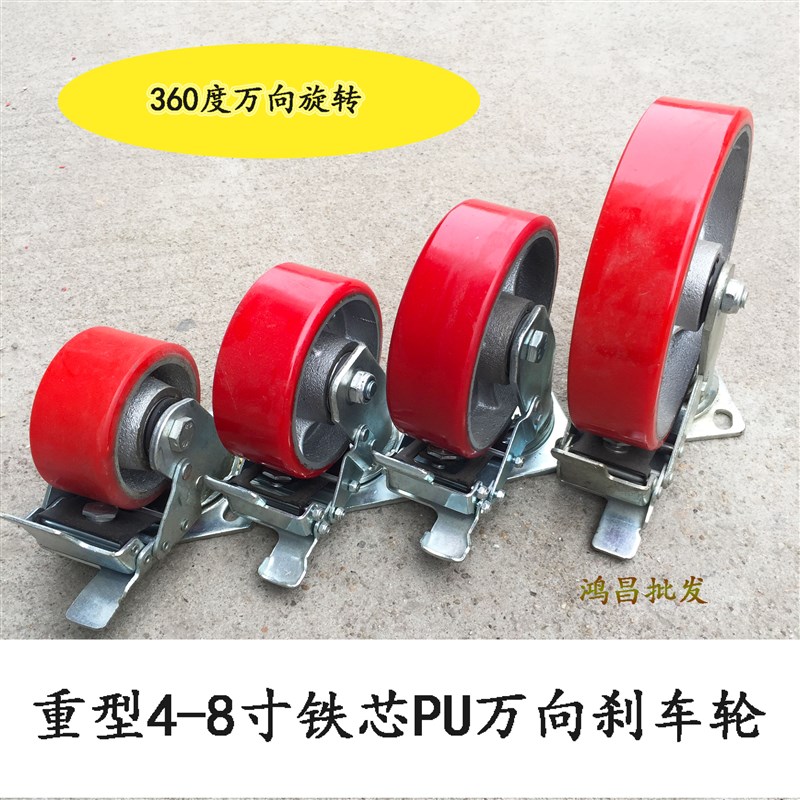 重型脚轮4寸5寸6寸8寸铁芯聚氨酯万向轮手推车刹车载重PU轮子轱辘