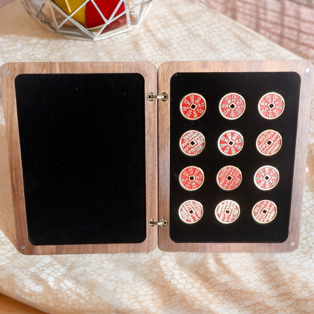 定制高档金银币礼品实木盒文玩古钱币铜钱袁大头徽章收藏礼木盒