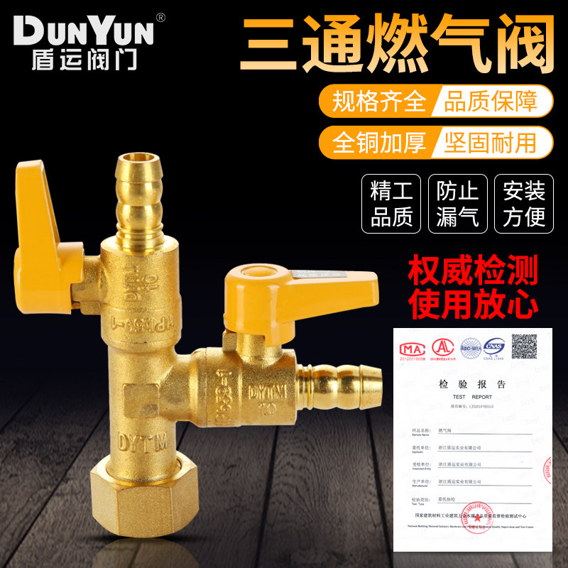 盾运全铜加厚燃气三通阀煤气阀门Y型天然气开关羊角阀4分三通球阀