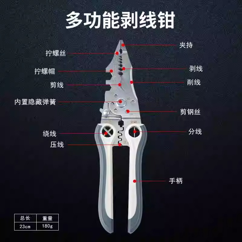 剥线钳电工专用多功能拨线压线拔下钳工具扒线皮钳子神器铬钒电缆
