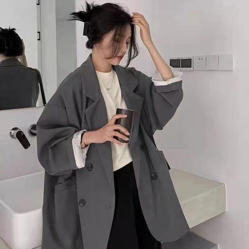 秋季韩版新款宽松中长款春秋季黑色休闲时尚西装外套西服大码上衣