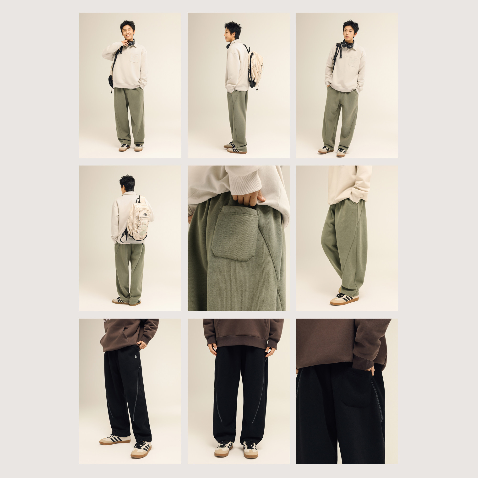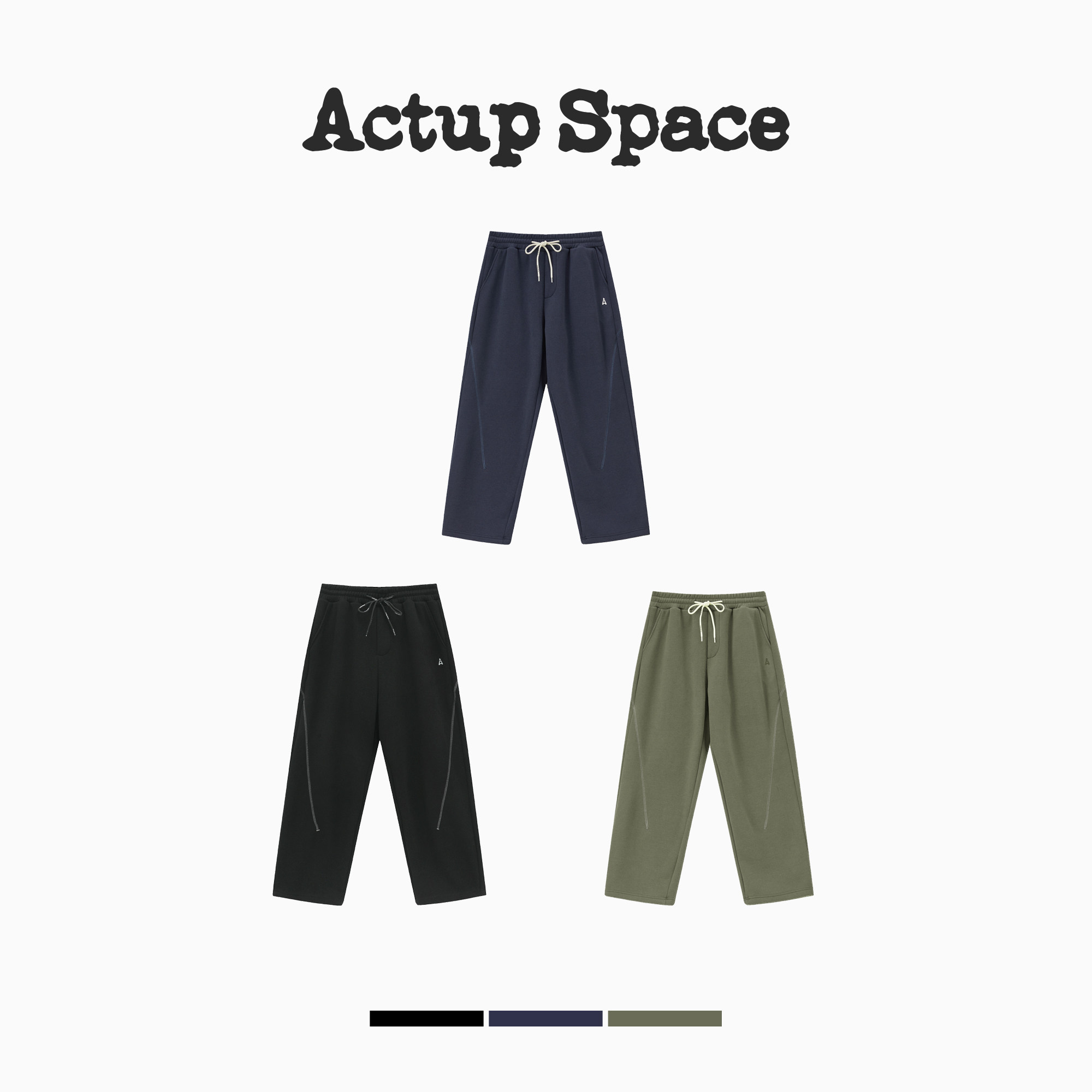吕小虎ACTUP 冬季加绒加厚针织卫裤男保暖休闲裤宽松直筒运动裤子
