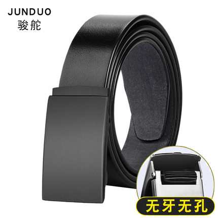 无牙自动扣皮带男真皮无孔光面腰带中年真牛皮男士无孔裤带平滑扣
