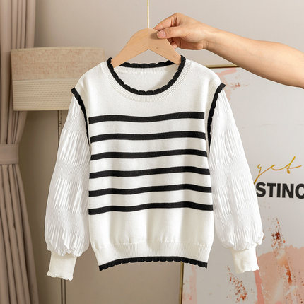女童针织衫条纹春秋甜美上衣