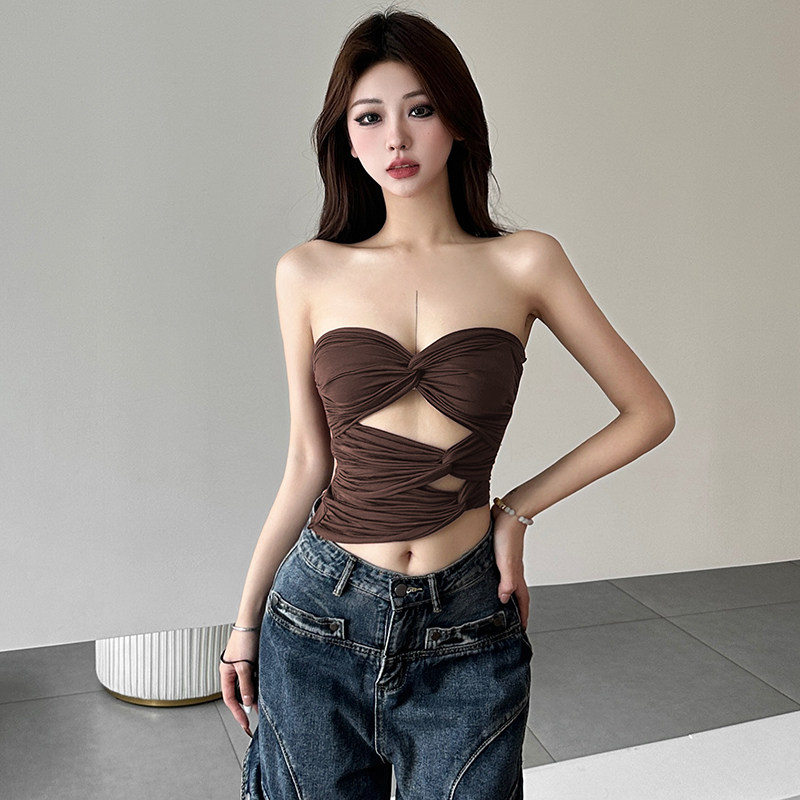 SylCue 复古辣妹风性感镂空显瘦抹胸背心女设计感扭结百搭上衣夏