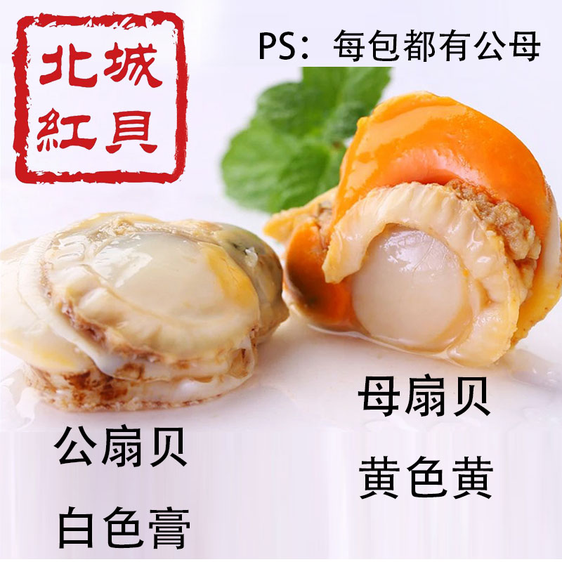 【200g*7包净重长岛红贝】2040长岛大规格新鲜速冻带黄超大扇贝肉