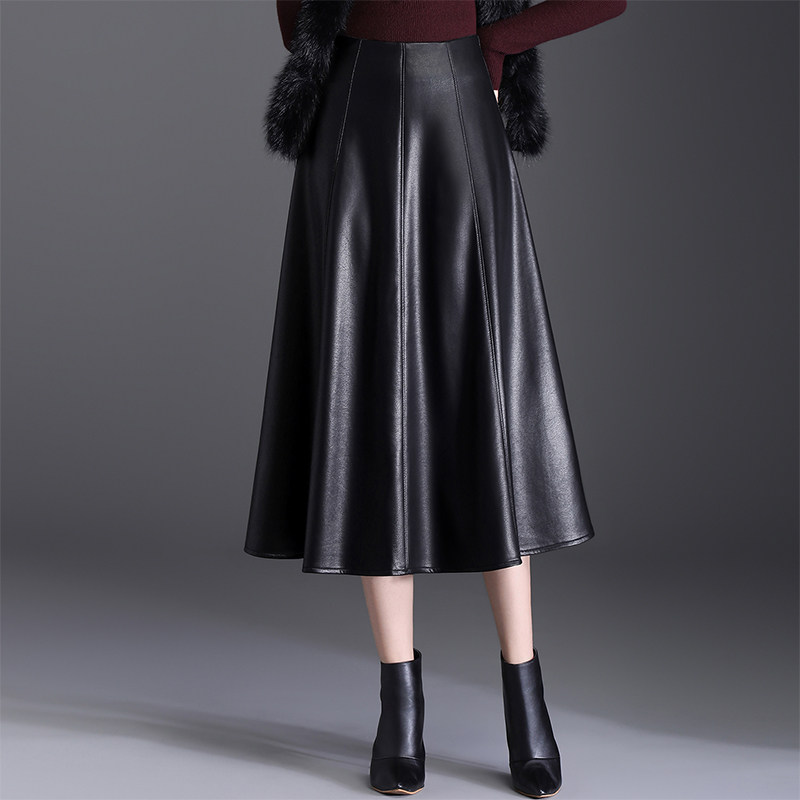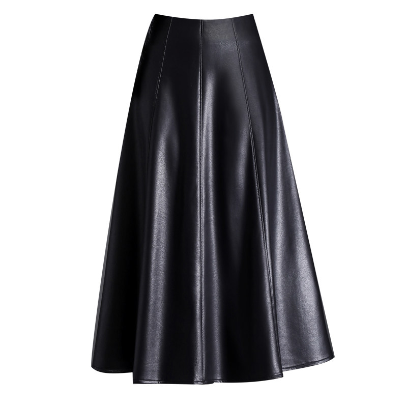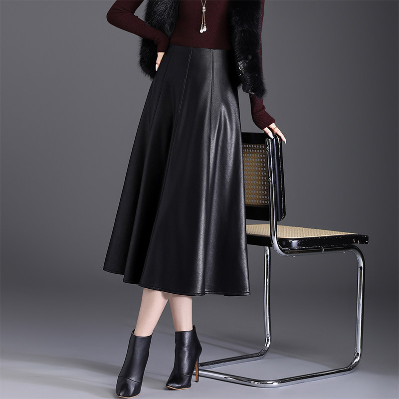 2025秋冬半身裙女PU皮中长款过膝大摆a字裙厚款高腰皮裙高档冬季