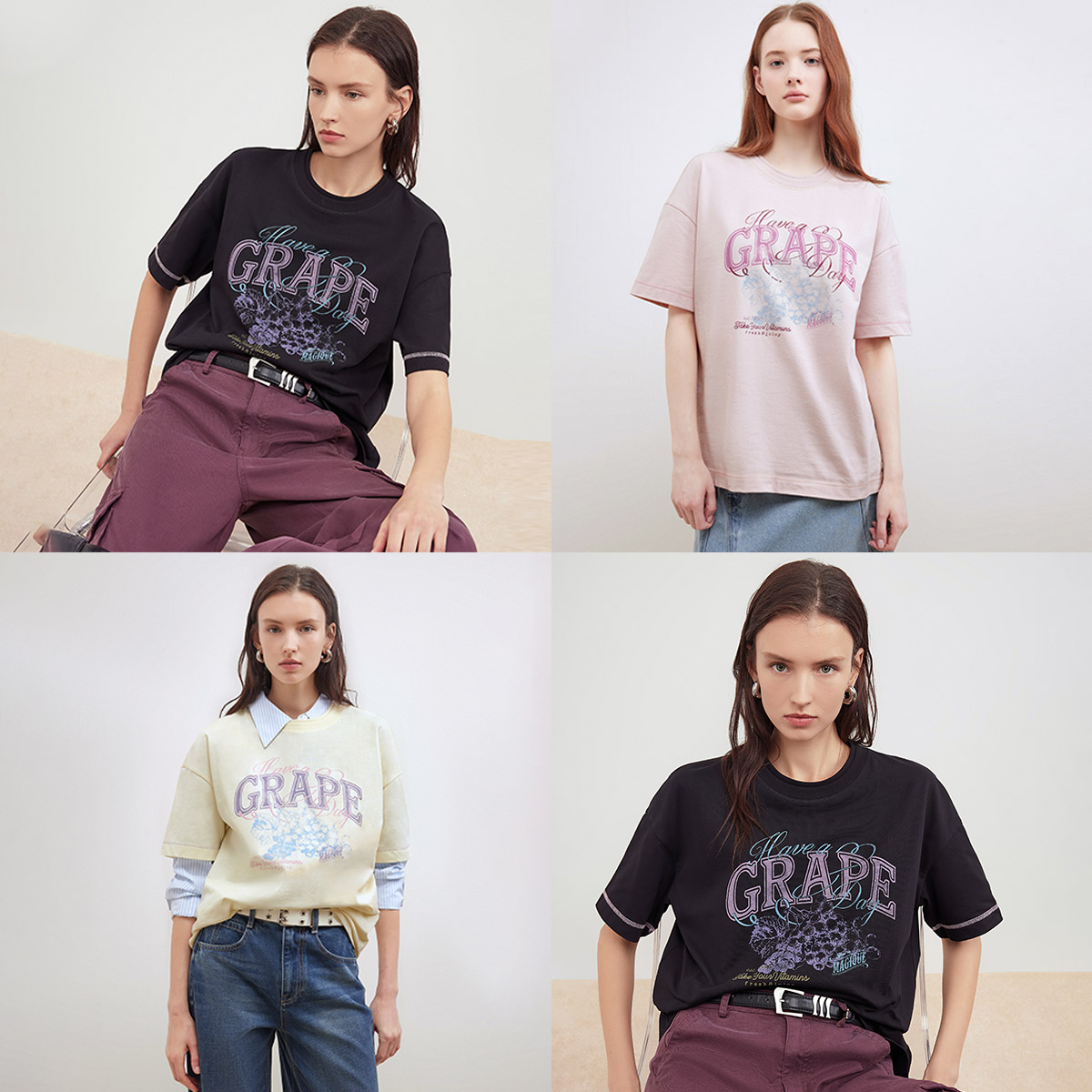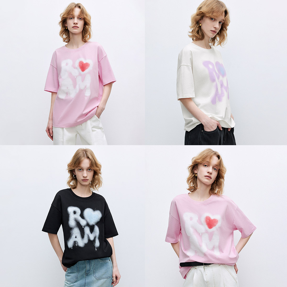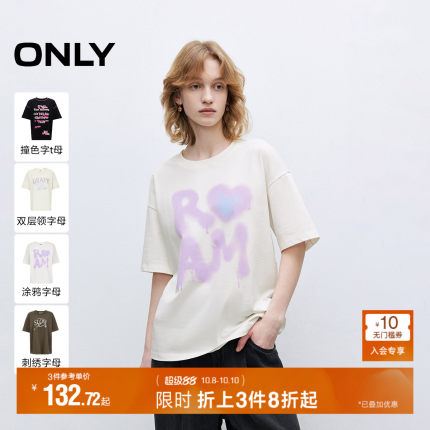 ONLY2025夏季新款活力少女感涂鸦字母印花宽松落肩圆领短袖T恤女