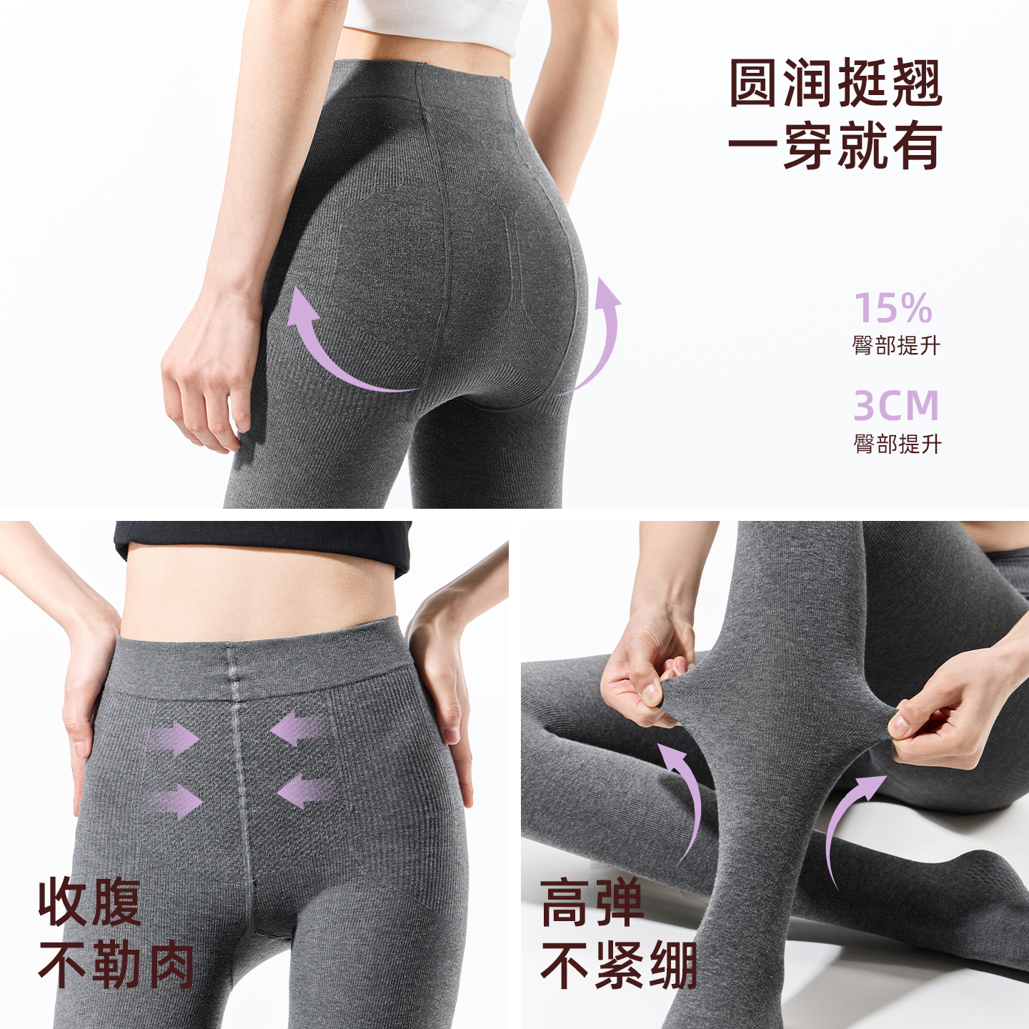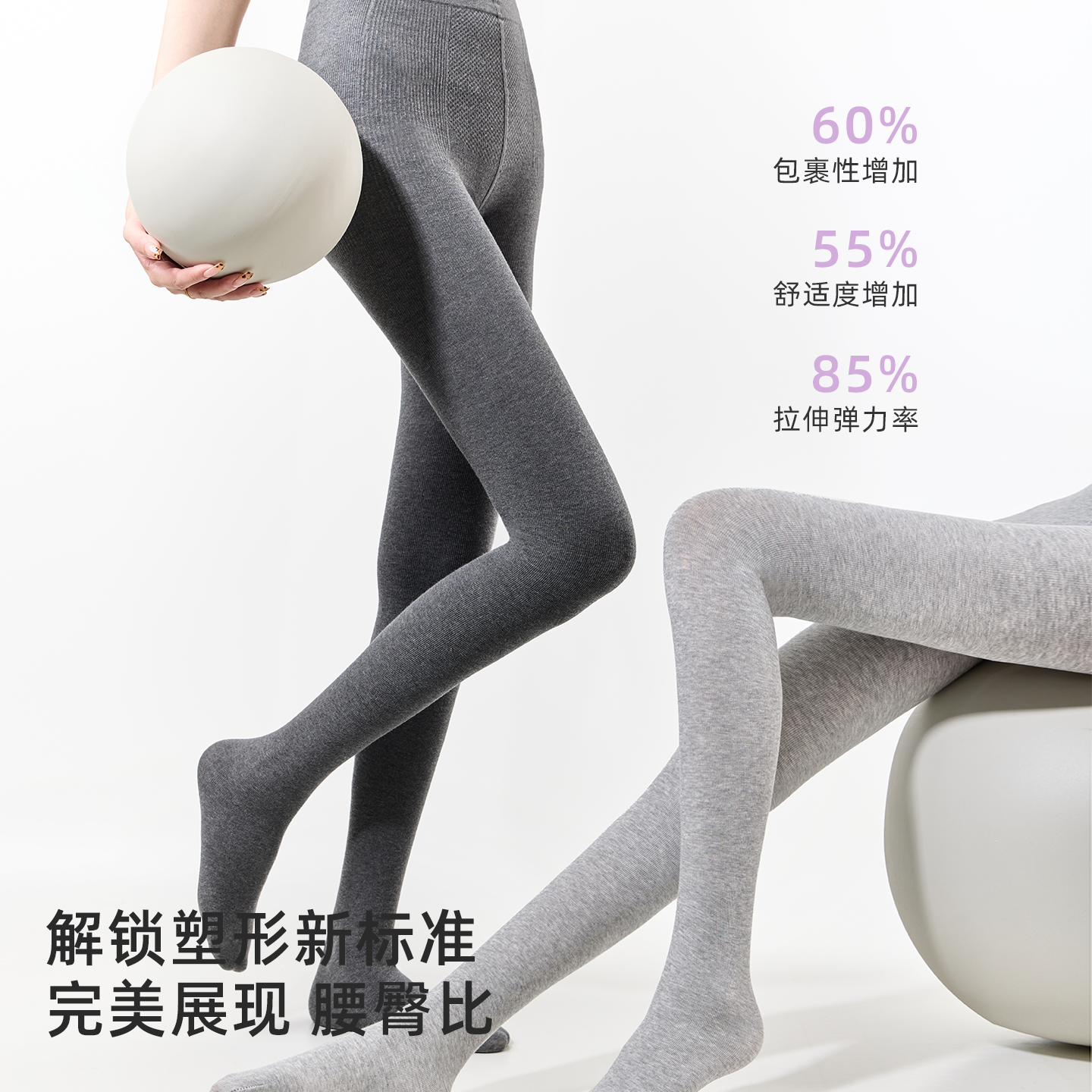 purpleguys灰色连裤袜女秋冬加绒加厚黑保暖羊绒微压显瘦打底裤袜