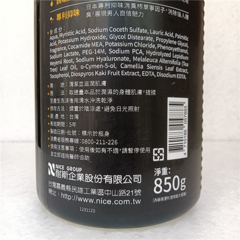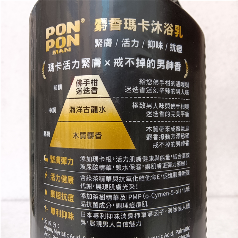 台湾采购 PONPON耐斯澎澎男士麝香玛卡沐浴露850ml沐浴液