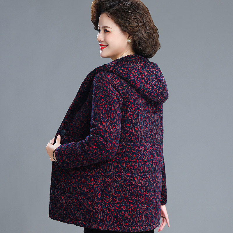 中老年女冬季棉服奶奶冬装棉衣纯棉灯芯绒外套洋气妈妈装连帽棉袄