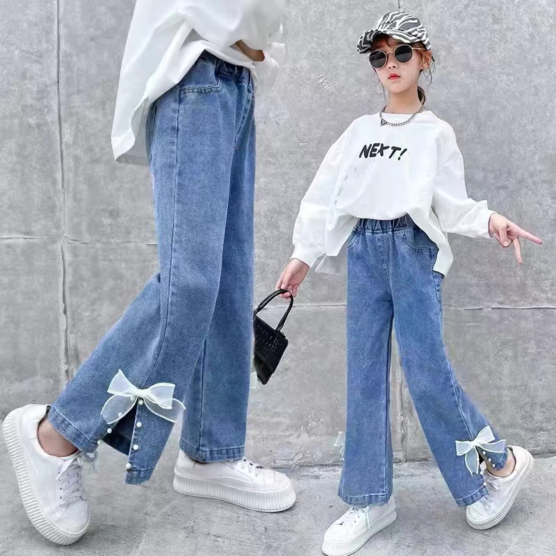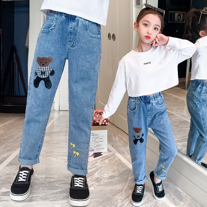 女童牛仔裤2024春秋新款女孩韩版洋气长裤中大童宽松时尚休闲裤子