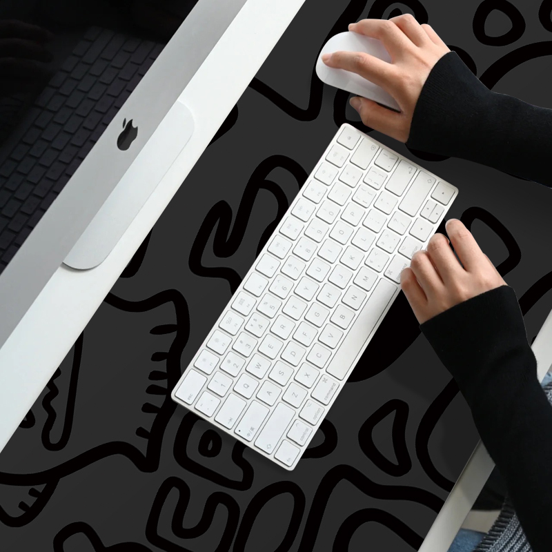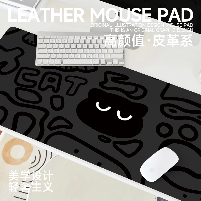 V-SION创意黑猫超大号皮革鼠标垫女生办公学习游戏电脑键盘书桌垫