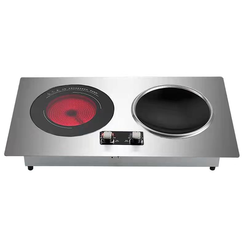 老人使用旋钮不锈钢面板嵌入式电磁炉双灶3500凹面镶嵌式爆炒双头