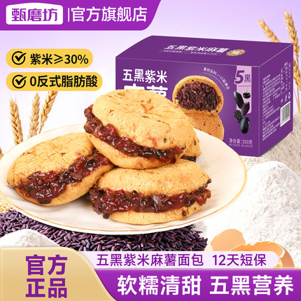 甄磨坊五黑紫米麻薯面包营养早餐爆浆麻球解馋休闲零食小吃整箱