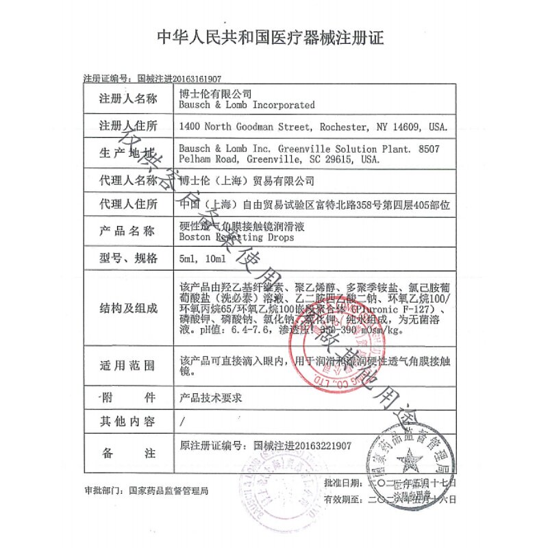 博视顿博士伦新洁润眼液10ml硬性角膜接触镜OK镜隐形眼镜润滑液