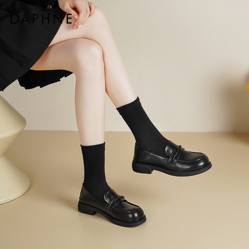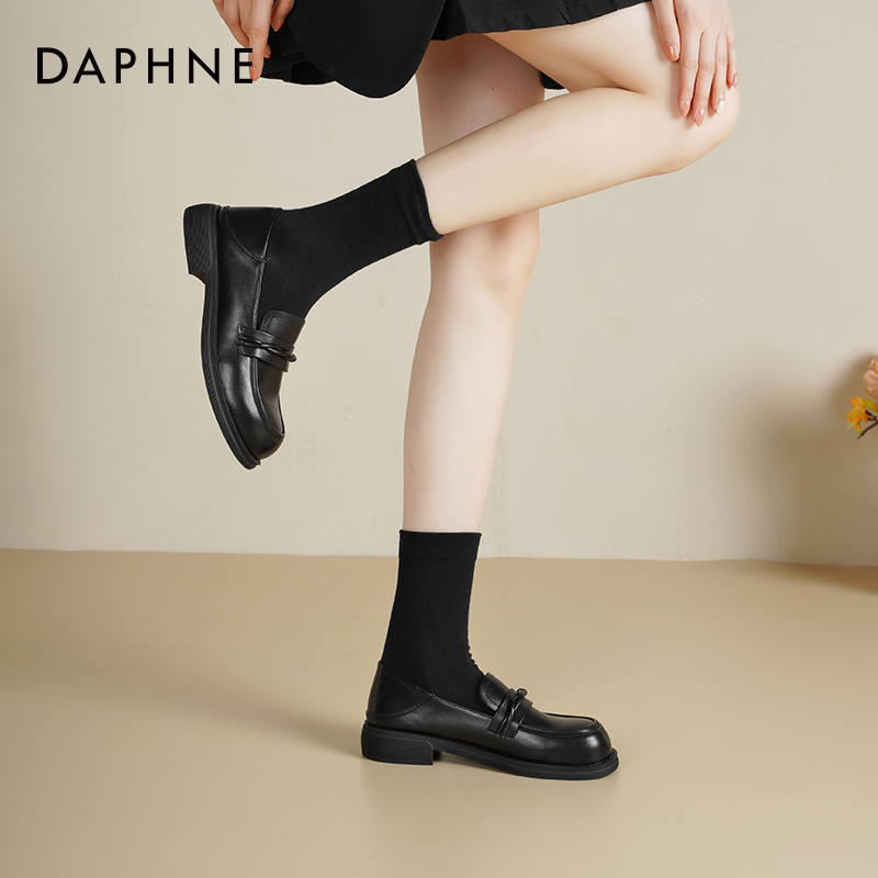达芙妮厚底乐福鞋女百搭英伦皮鞋