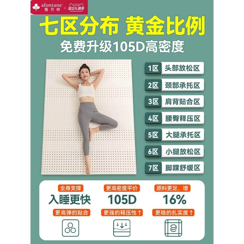 雅芳婷乳胶床垫1.8m床家用天然橡胶泰国软垫学生单人宿舍专用榻榻