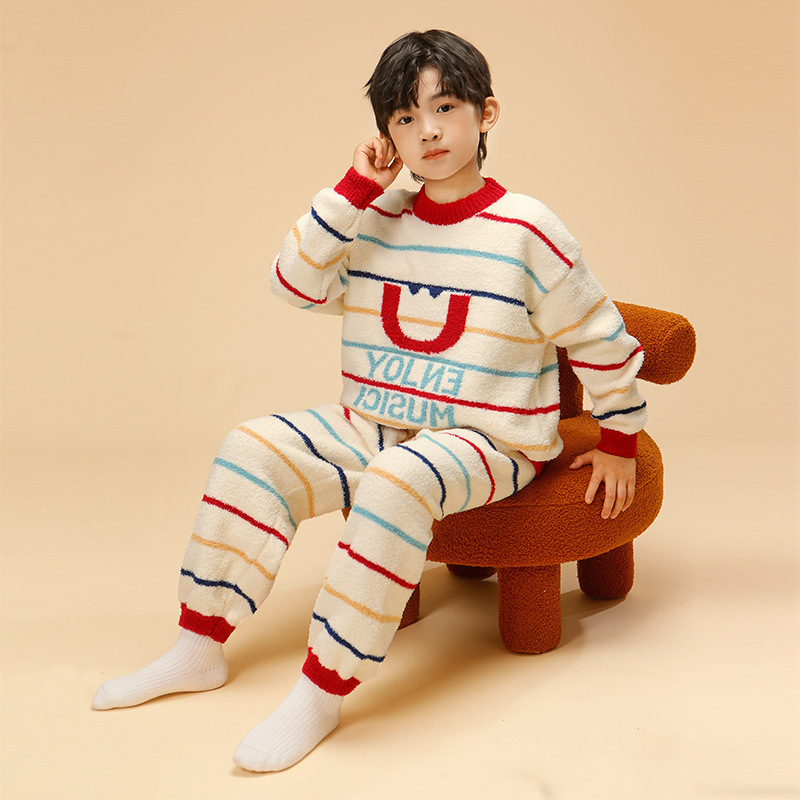半边绒儿童睡衣套装秋冬亲子男女童宝宝珊瑚绒家居服法兰绒软绵绵