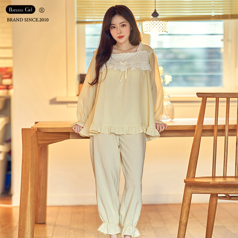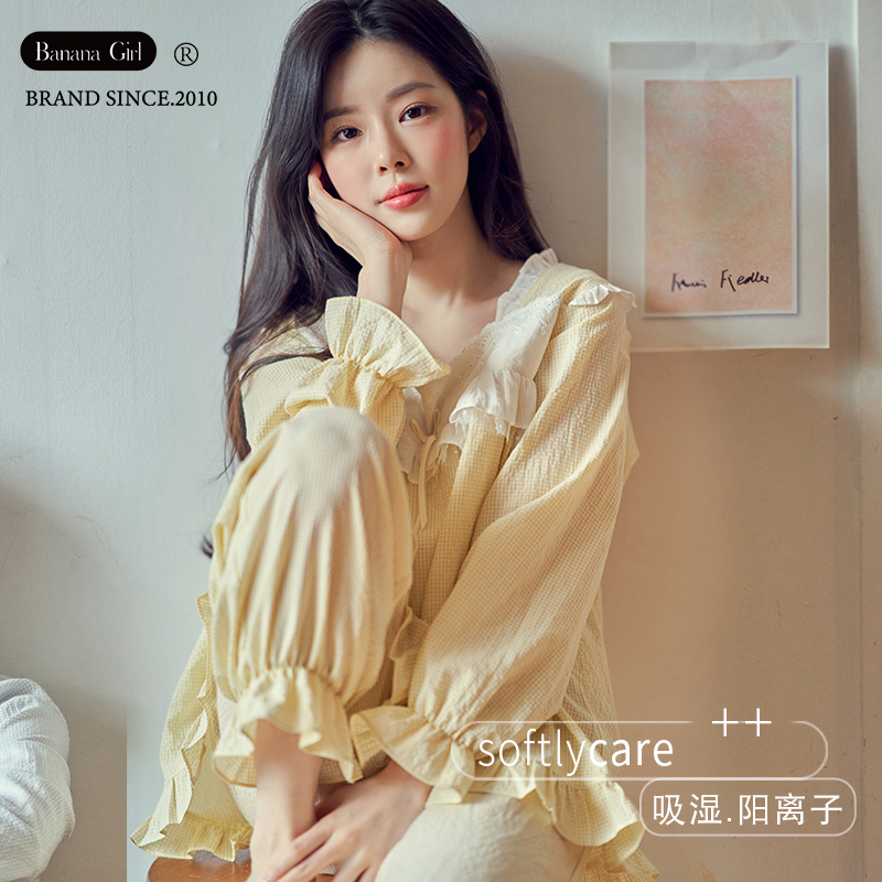 bananagirl睡衣女士春秋长袖薄款大码高级感情侣睡衣可外穿家居服