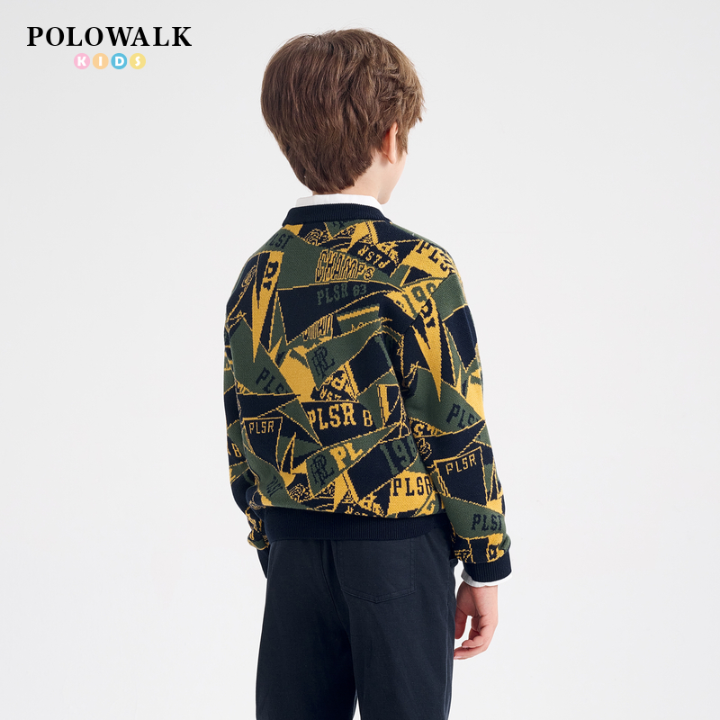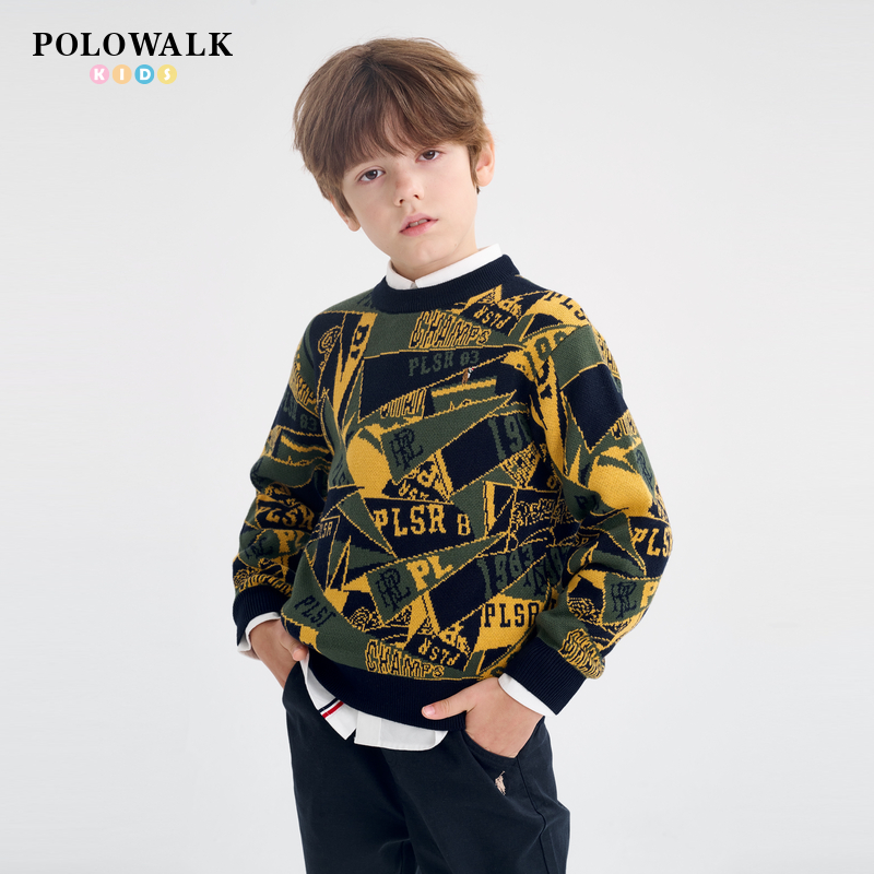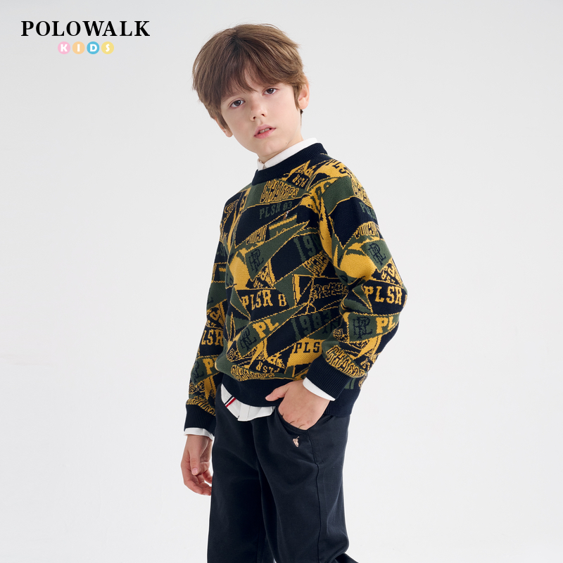 POLOWALK童装2025秋冬男童圆领提花外穿保暖线衫毛衣长袖针织衫