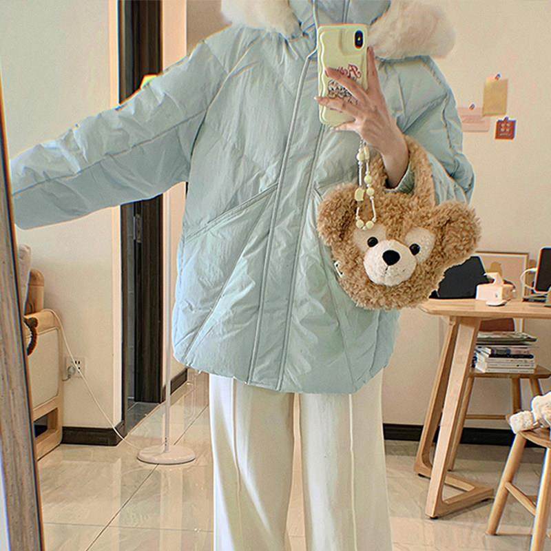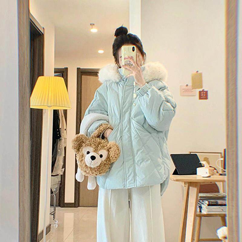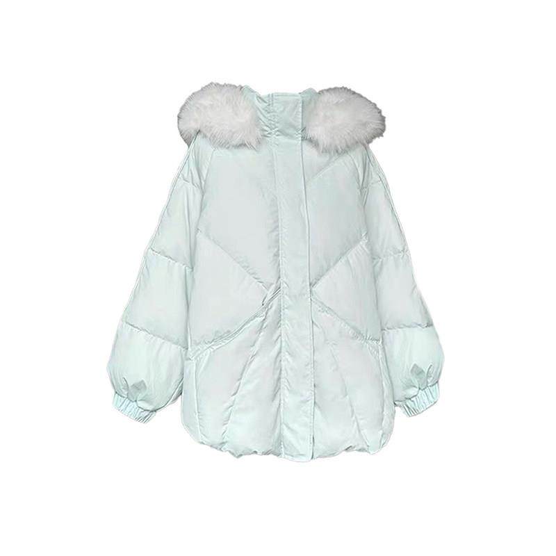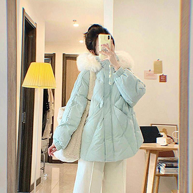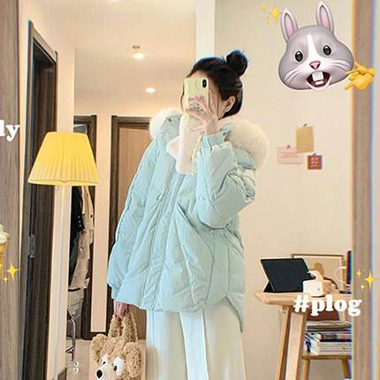 胖mm大码女装奶呼呼大毛领棉服女浅色系保暖加厚显瘦连帽冬装外套
