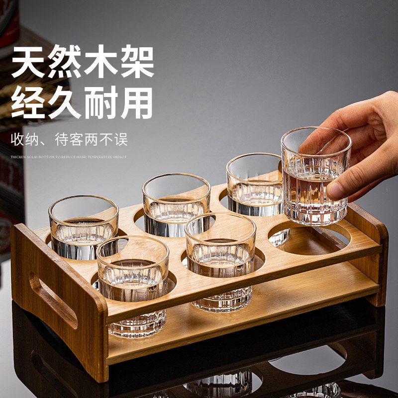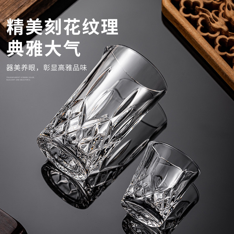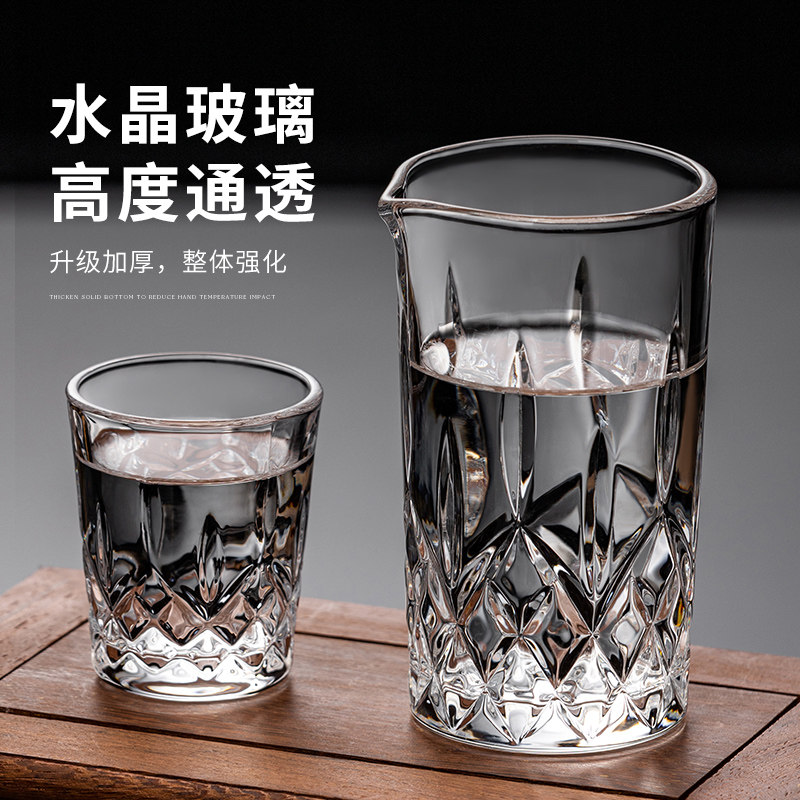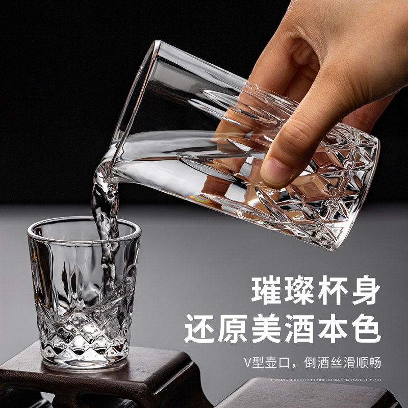 中式浮雕白酒杯分酒器轻奢高档家用加厚一两玻璃小杯子烈酒具套装