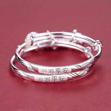 纯银手镯岁岁平安儿童好宝宝镯子