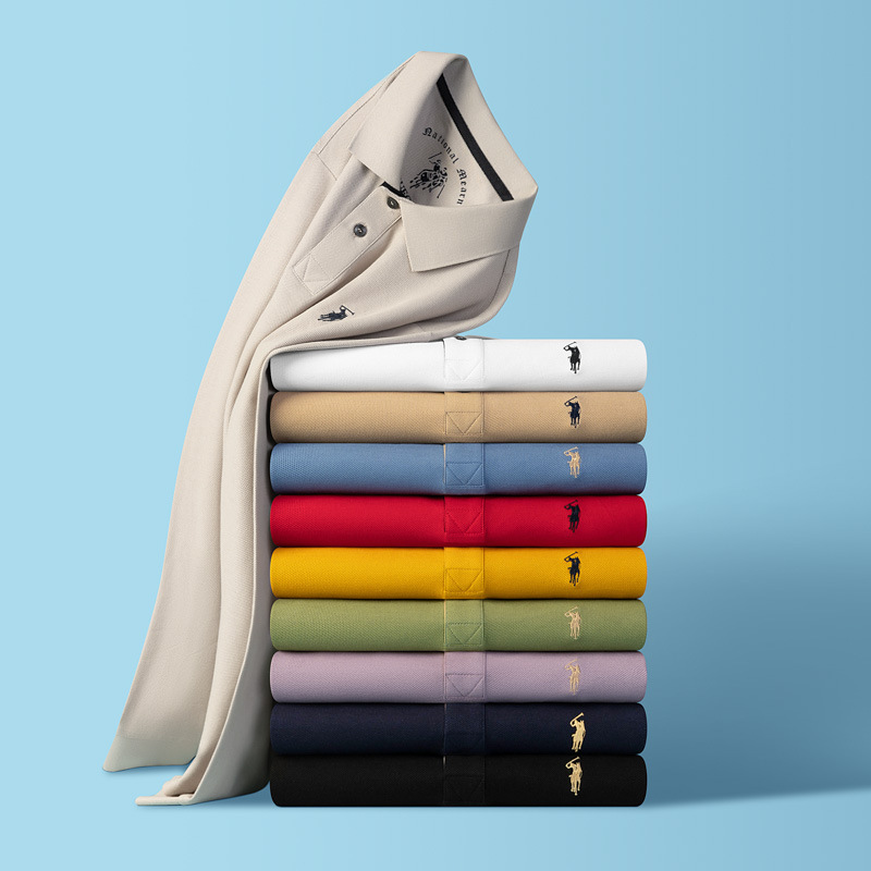 男士长袖翻领T恤纯棉刺绣polo衫男式休闲免烫中青年爸爸春秋上衣