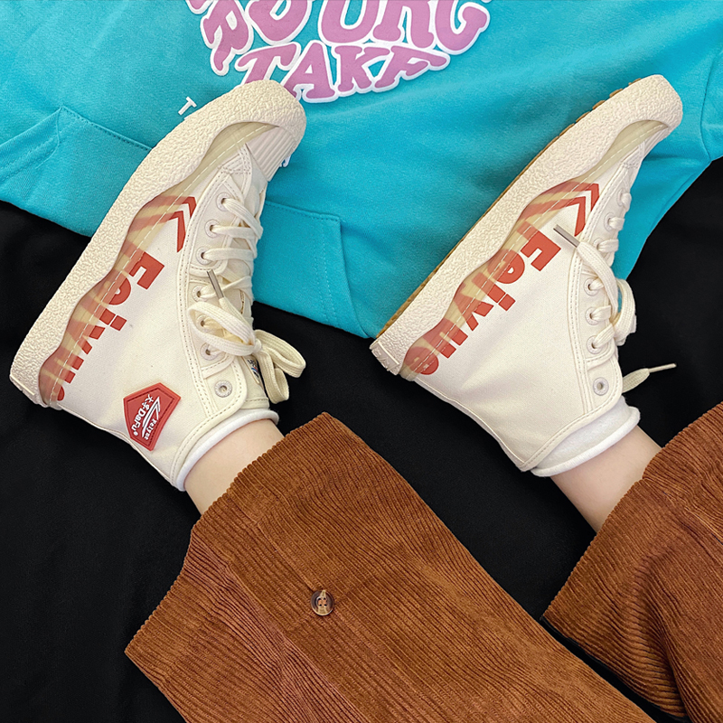 飞跃女鞋高帮帆布鞋女2024秋季新款百搭平底布鞋复古风ins潮鞋子