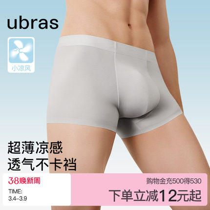 ubras冰丝男士内裤夏季薄款透气速干纯棉抗菌裆男生四角平角短裤