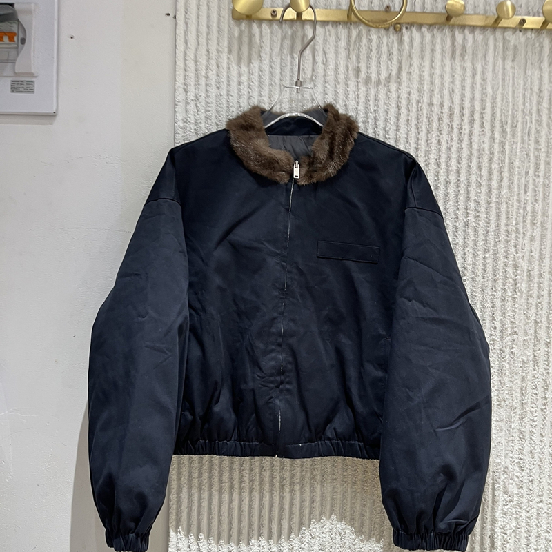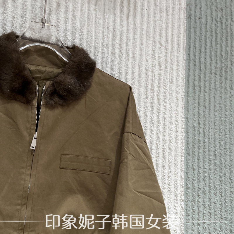 欧洲站2025冬季新款 时尚个性拼接毛领拉链短款白鸭绒羽绒服06400