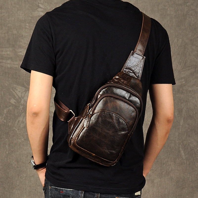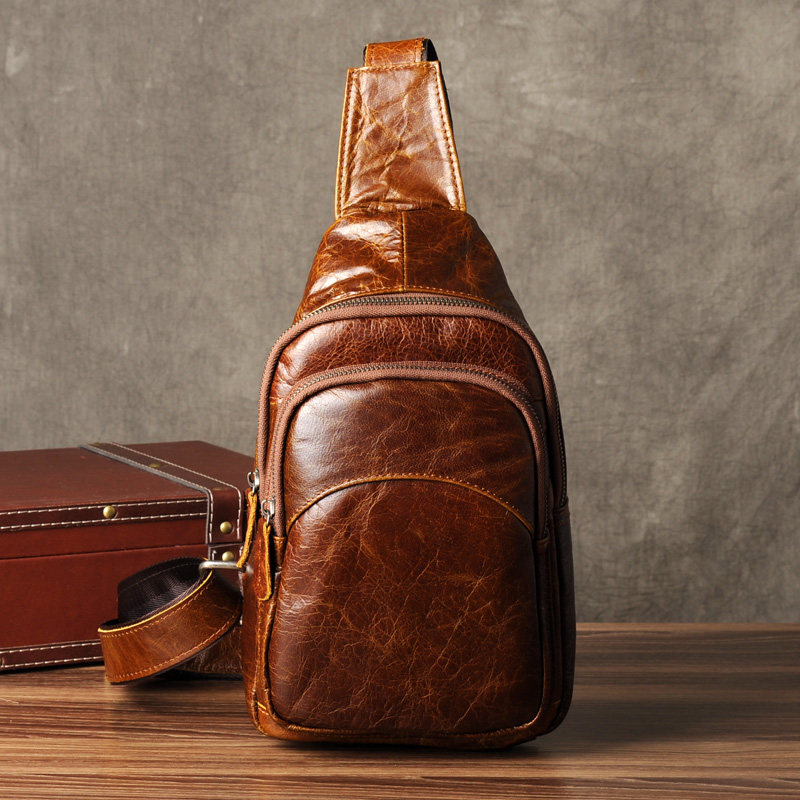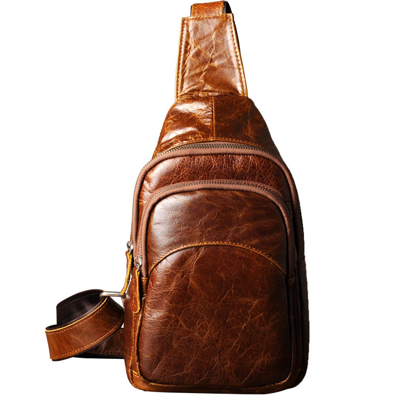 古造新款真皮男士胸包头层牛皮小背包时尚潮复古休闲胸前包斜挎包